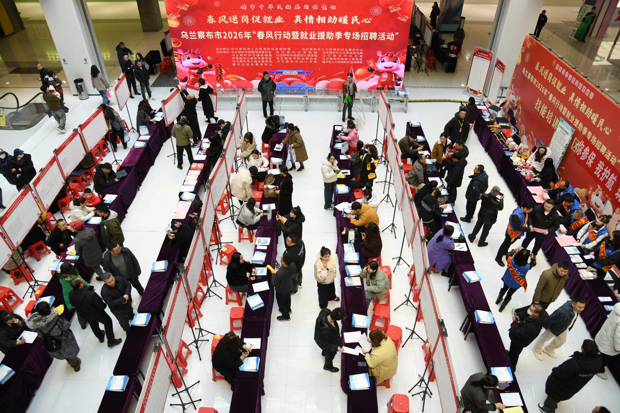 2月23日,以“春風送崗促就業(yè) 真情相助暖民心”為主題的烏蘭察布市2026年春風行動暨就業(yè)援助季專場招聘活動在集寧區(qū)維多利摩爾城舉行。