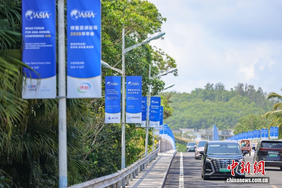 3月17日,博鰲亞洲論壇2026年年會(huì)各項(xiàng)籌備工作正有序推進(jìn),海南博鰲街頭的盛會(huì)氛圍日漸濃厚。以“塑造共同未來:新形勢(shì)、新機(jī)遇、新合作”為主題的博鰲亞洲論壇2026年年會(huì)將于3月24日至27日在海南博鰲召開。圖為博鰲培蘭橋道路兩側(cè),博鰲亞洲論壇2026年年會(huì)道旗整齊排列。中新社記者 駱云飛 攝