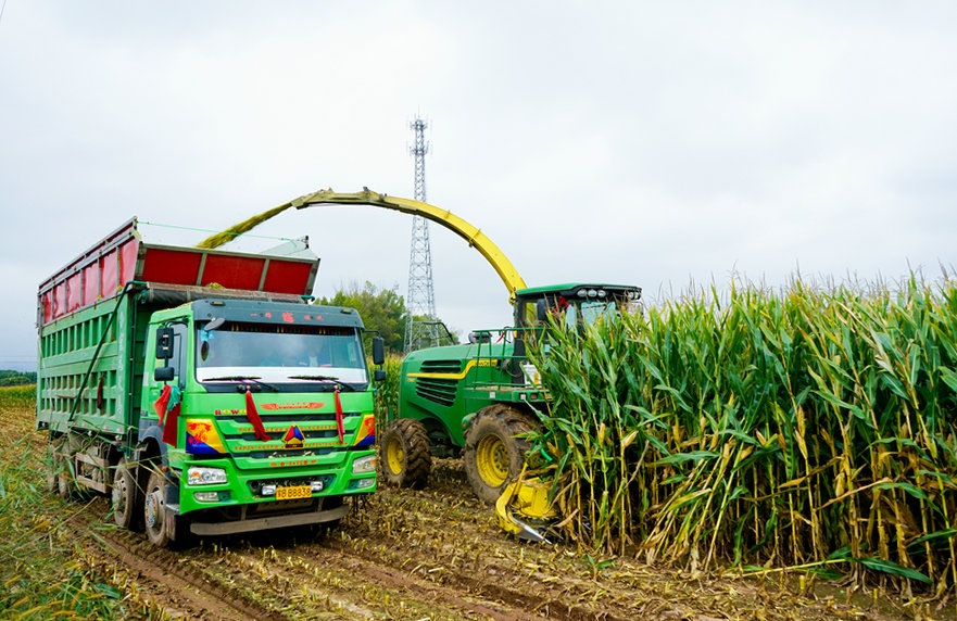 青貯玉米是把玉米植株全部收割下來(lái)經(jīng)過(guò)切碎、加工后用發(fā)酵的方法制作成青貯飼料的玉米,用來(lái)飼喂牛、羊等牲畜。這幾天,土默特左旗青貯玉米陸續(xù)進(jìn)入豐收季,收割工作全面啟動(dòng)。
