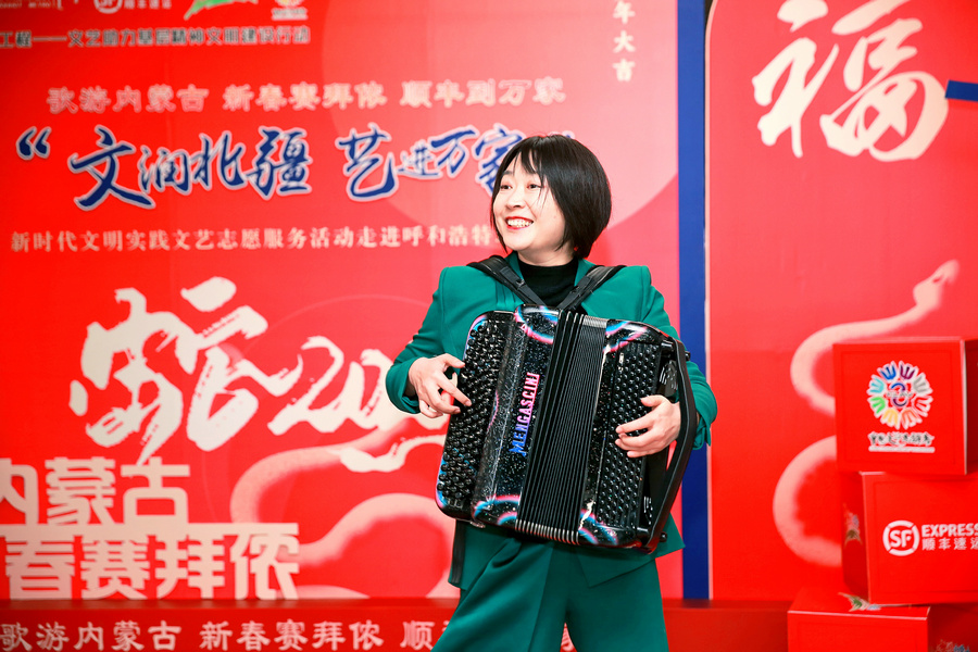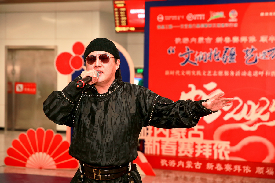 北疆新聞呼和浩特1月1日電(記者 張楊)“夢(mèng)中的呼和浩特,胸懷像草原遼闊……”2025年1月1日上午,悠揚(yáng)的歌聲在呼和浩特地鐵 1 號(hào)線內(nèi)蒙古博物院站飄揚(yáng)。新年第一天,“歌游內(nèi)蒙古 新春賽拜儂 順豐到萬家”新時(shí)代文明實(shí)踐文藝志愿服務(wù)活動(dòng)在此舉行,現(xiàn)場(chǎng)除了青城市民耳熟能詳?shù)脑瓌?chuàng)歌曲《夢(mèng)中的呼和浩特》外,根據(jù)南北朝民歌改編的《敕勒歌》、布里亞特蒙古族民歌《吆赫爾》、二人臺(tái)傳統(tǒng)唱段《拜大年》、相聲表演《說學(xué)逗唱》、手風(fēng)琴獨(dú)奏《我的少女時(shí)代》、蒙古舞《迷途的羔羊》等精彩紛呈的節(jié)目,讓往來的乘客們紛紛駐足、高聲喝彩。