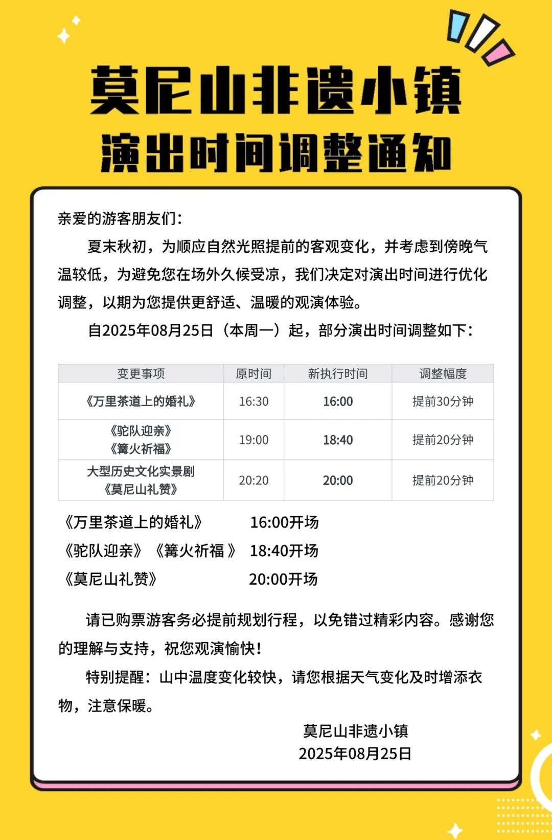 部分演出時(shí)間進(jìn)行調(diào)整