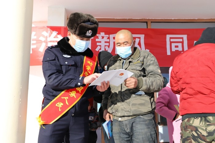 期間,該派出所結(jié)合“110”宣傳日,深入邊境轄區(qū)企業(yè)、嘎查、牧戶家中開展普法送法活動,向群眾宣傳普及新冠肺炎疫情防控法律法規(guī)、民法典、內(nèi)蒙古自治區(qū)邊境管理條例等,不斷提升轄區(qū)群眾學(xué)法守法懂法用法的意識,并幫助轄區(qū)孤寡老人喂養(yǎng)牲畜、維修水泵,詳細(xì)了解家庭實際困難,切實讓轄區(qū)群眾感受到關(guān)懷和溫暖。