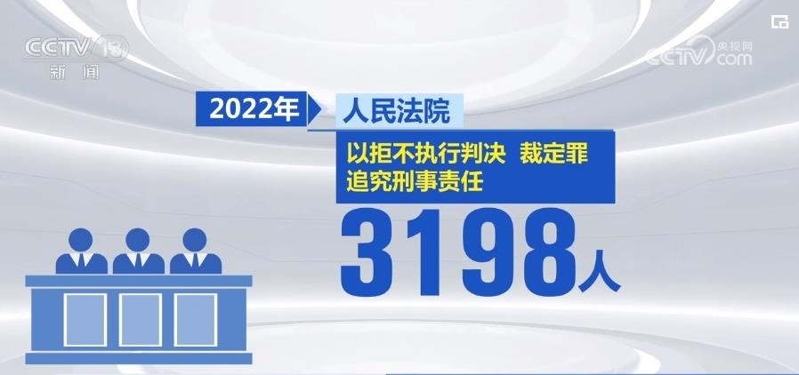 2022年,人民法院以拒不執(zhí)行判決、裁定罪追究刑事責(zé)任3198人。下一步,最高人民法院將聯(lián)合公安機(jī)關(guān)、檢察機(jī)關(guān)開(kāi)展集中打擊拒不執(zhí)行判決、裁定犯罪專項(xiàng)行動(dòng),建立健全公檢法機(jī)關(guān)依法懲治拒不執(zhí)行判決、裁定犯罪的常態(tài)化工作機(jī)制。