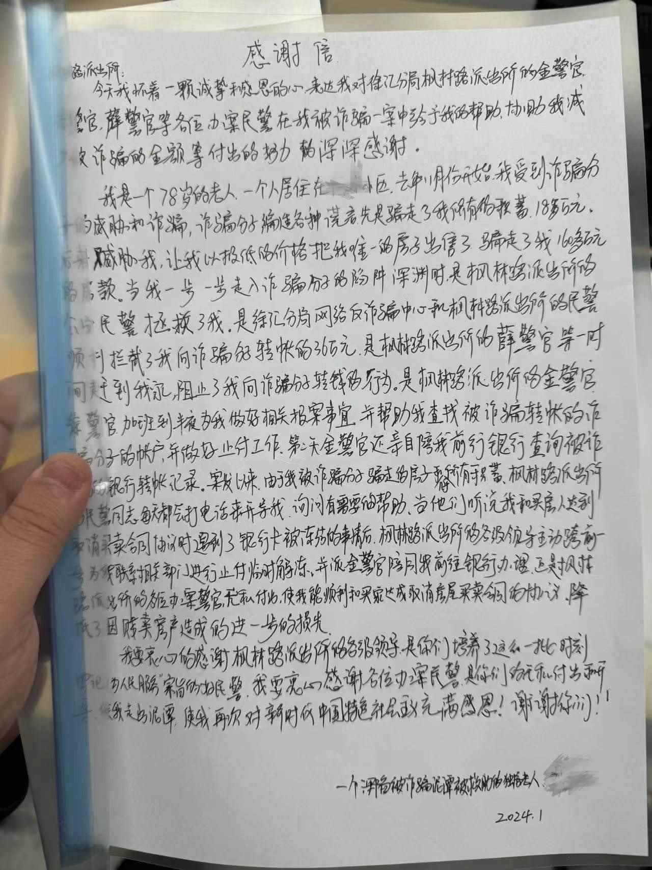 “我要衷心感謝各位辦案民警,是你們的無(wú)私付出和開(kāi)導(dǎo),使我走出泥潭!”事后,市民劉女士向楓林路派出所民警送來(lái)感謝信。