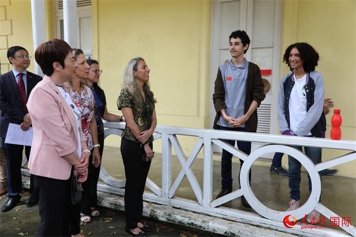 2月14日,中國(guó)駐里約熱內(nèi)盧總領(lǐng)事田敏來到巴西里約州尼特羅伊市的尼特羅伊葡中雙語中學(xué)訪問,并向該校捐贈(zèng)了一批中國(guó)文化書籍。人民網(wǎng)記者 陳一鳴攝