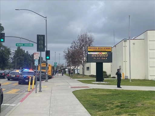 新華社洛杉磯2月24日電(記者高山)當(dāng)?shù)貢r間2月21日下午3點(diǎn)多,美國加利福尼亞州洛杉磯縣阿卡迪亞高中即將放學(xué),突然間大批警車呼嘯而至,封鎖了各個入口,荷槍實(shí)彈的警察在直升機(jī)掩護(hù)下沖入校園。教室內(nèi),師生們緊張地躲到桌下。校園外,家長們焦急地等待消息。