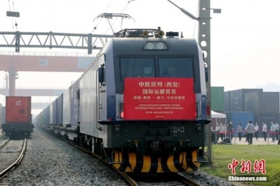資料圖:2022年9月16日,中歐班列(西安)國(guó)際運(yùn)郵專線首次開行,列車裝載著國(guó)際郵件、包裹、商業(yè)快件從西安國(guó)際港站駛出,經(jīng)阿拉山口口岸出境,將于約12天后抵達(dá)波蘭馬拉舍維奇,郵件再交由波蘭郵政轉(zhuǎn)運(yùn)到歐洲各國(guó)。 中新社記者 張遠(yuǎn) 攝