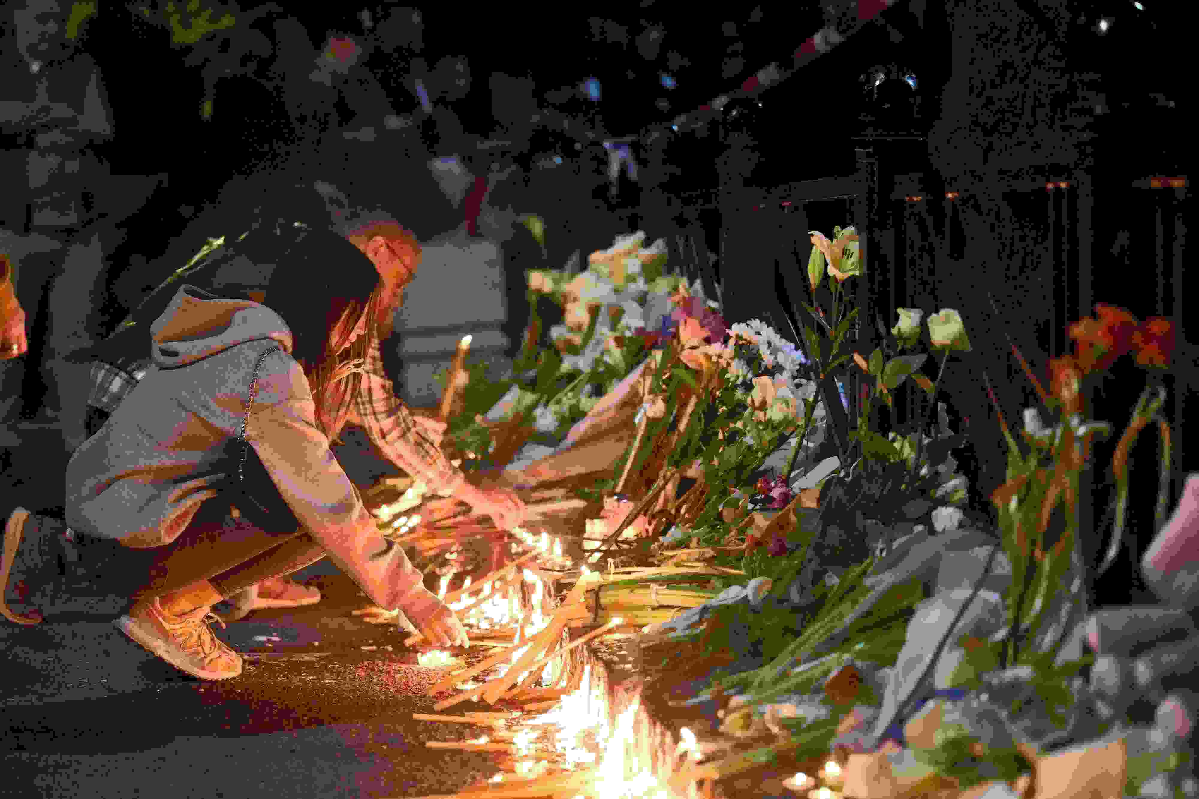 當?shù)貢r間2023年5月3日,塞爾維亞貝爾格萊德,人們在學校門前悼念遇難者。