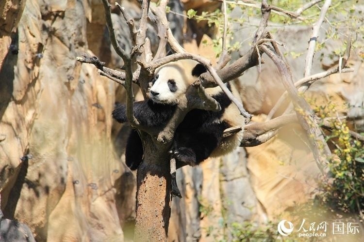 另一片區(qū)域,“圓嘟嘟”已吃飽喝足,在高高的樹杈上進(jìn)入了夢(mèng)鄉(xiāng)?!皻g黎黎”則在室內(nèi)玻璃房里酣睡。這兩只一歲多的小家伙體重已經(jīng)達(dá)到60公斤左右,自出生就備受法國民眾關(guān)注,貝亞特麗斯(Béatrice)便是其中之一。她告訴記者,自己已經(jīng)是第二次來博瓦勒動(dòng)物園了,計(jì)劃每年都過來看這對(duì)雙胞胎一次。 “從它們出生開始,我的孩子們也在社交網(wǎng)絡(luò)上關(guān)注‘歡黎黎’和‘圓嘟嘟’的動(dòng)態(tài)?!彼硎咀约簩?duì)大熊貓生活的四川省充滿了好奇,希望有一天可以去中國看更多的大熊貓。