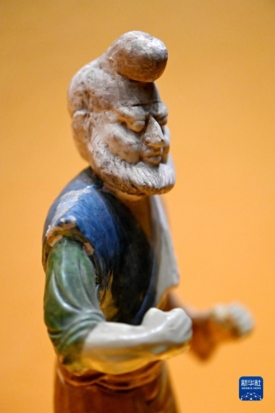 這是在西安博物院展出的唐代三彩胡人牽馬(駝)陶俑(5月8日攝)。唐代的長安城中居住著大批胡人,胡樂、胡服風靡長安,經(jīng)考古出土的陶俑中有為數(shù)不少的胡人形象。