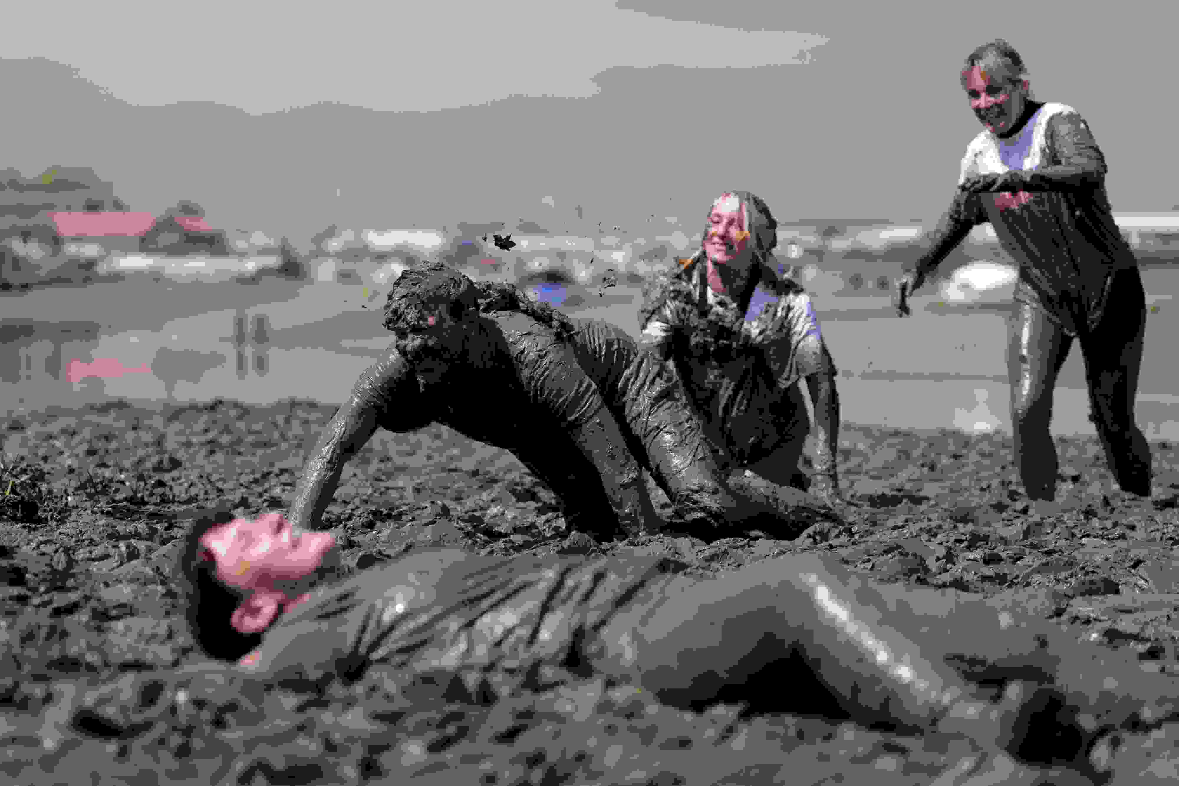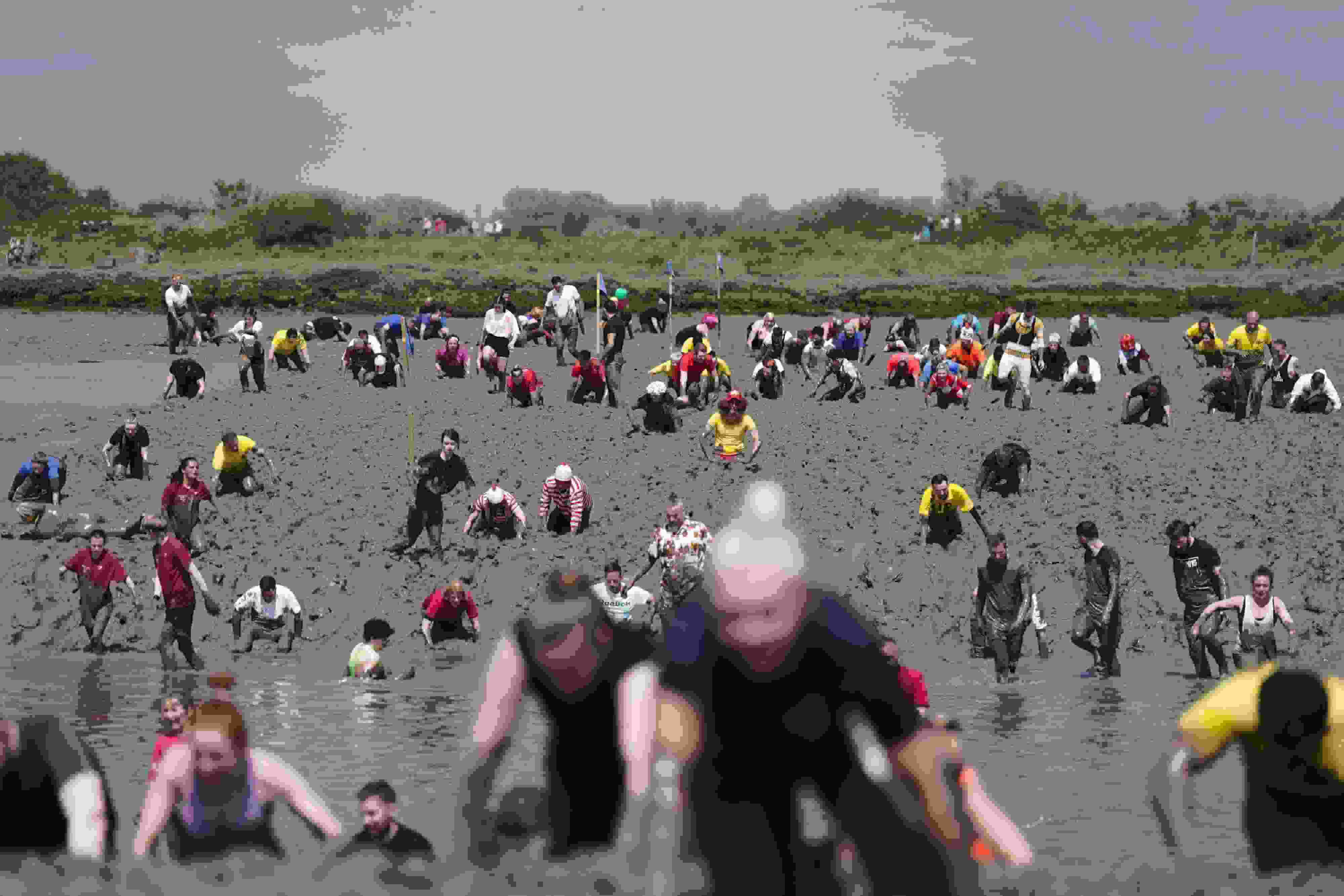 當(dāng)?shù)貢r(shí)間2023年5月14日,英國莫爾登,參賽者參加一年一度的滾泥巴大賽。該大賽是一項(xiàng)慈善活動,參賽者要在埃塞克斯郡的黑水河河床上賽跑。 視覺中國