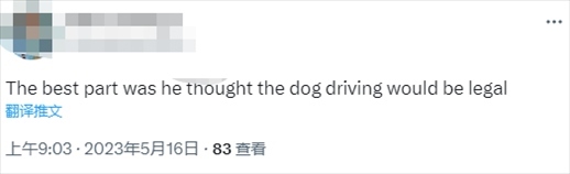 還有網(wǎng)友說(shuō),“最棒的地方是他覺(jué)得狗開車是合法的”。