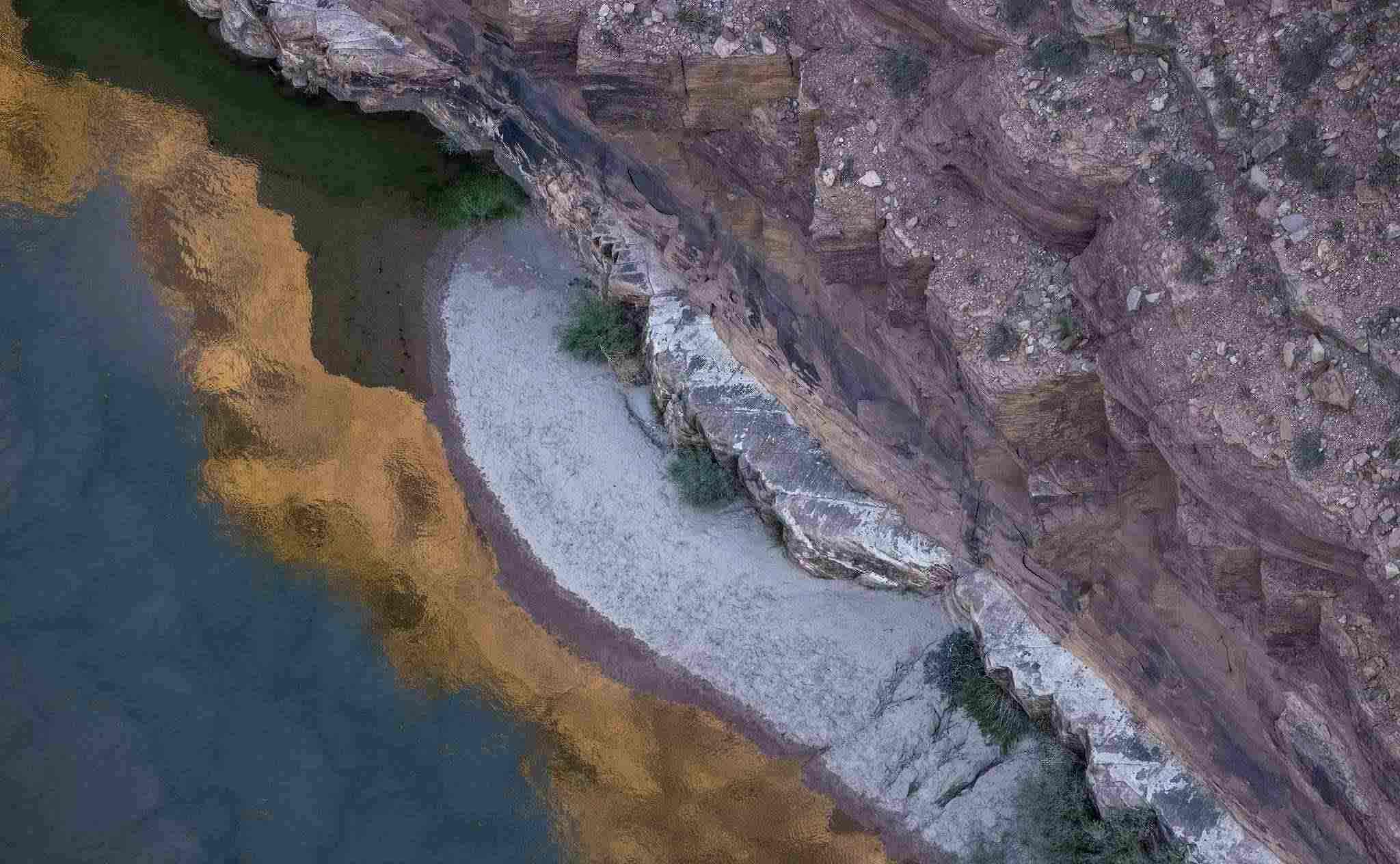 當(dāng)?shù)貢r間2022年8月31日,美國亞利桑那州大理石峽谷,當(dāng)沉積物在流經(jīng)鮑威爾湖下游的大理石峽谷時,紅色砂巖懸崖倒映在科羅拉多河中。近幾年,氣候變化導(dǎo)致的干旱使美國第二大水庫鮑威爾湖的水位下降。
