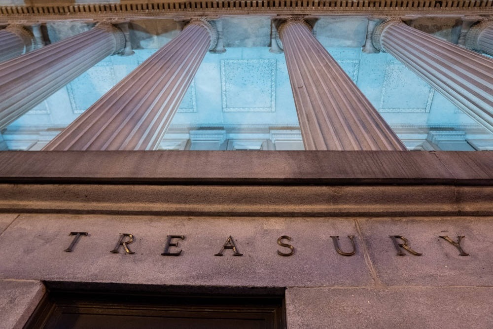 這是1月20日在美國(guó)首都華盛頓拍攝的財(cái)政部大樓。(新華社記者劉杰攝)