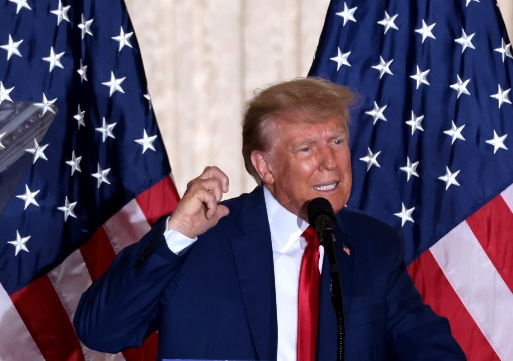 今年3月,特朗普在一場(chǎng)競(jìng)選集會(huì)上羞辱德桑蒂斯。(資料圖)