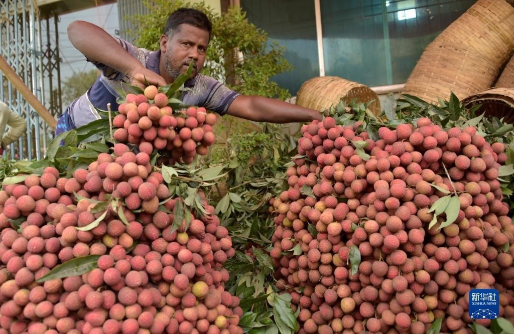這是6月4日在孟加拉國(guó)迪納杰布爾市場(chǎng)中拍攝的待售的荔枝。新華社發(fā)