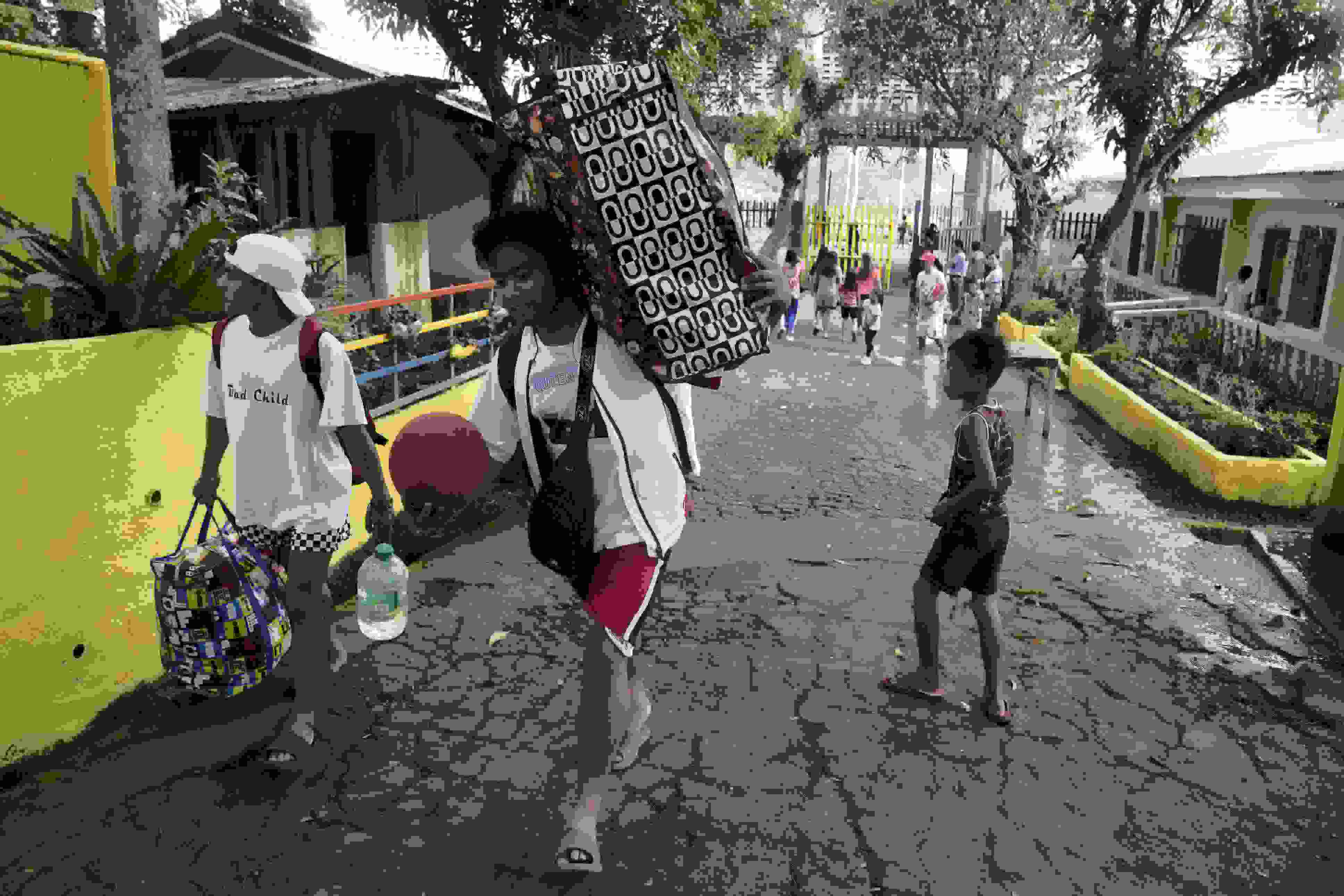 當(dāng)?shù)貢r(shí)間2023年6月10日,菲律賓阿爾拜省,撤離人員帶著他們的物品抵達(dá)臨時(shí)安置點(diǎn)。 視覺中國