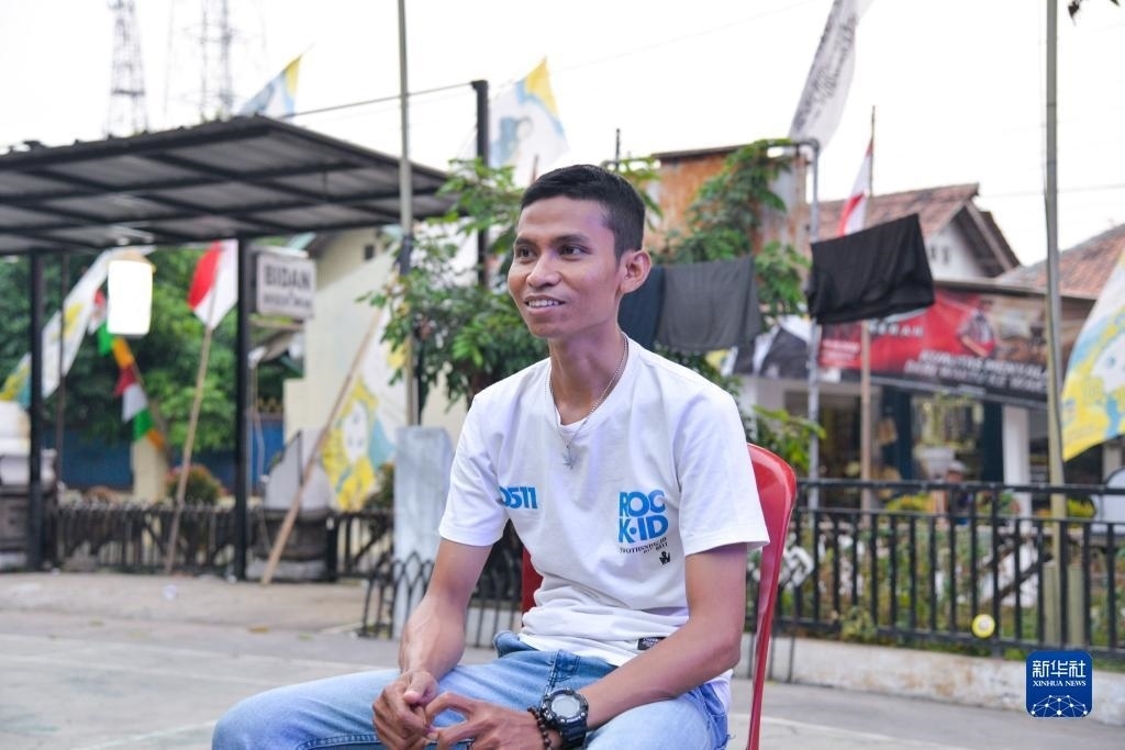 8月13日,在印度尼西亞普哇加達(dá)縣蘇卡加亞村,村長助理佩爾馬納接受新華社記者采訪。新華社記者 徐欽 攝