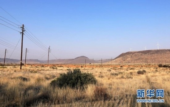 這是8月10日在南非北開普省德阿鎮(zhèn)拍攝的龍源南非公司德阿風電項目風機和輸電線路。 新華社記者 董江輝 攝