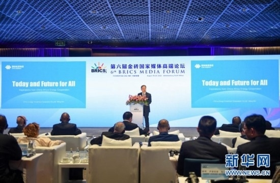 8月19日,國家能源集團董事王敏在第六屆金磚國家媒體高端論壇智庫報告發(fā)布暨研討會上進行主旨發(fā)言。新華社記者 李亞輝 攝