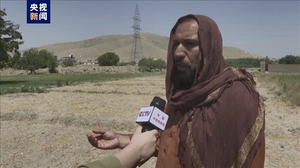 △阿富汗農(nóng)民布賓向記者講述干旱缺水影響了小麥的品質(zhì)和產(chǎn)量