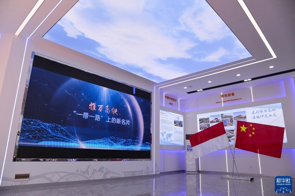 這是7月20日在印度尼西亞萬隆德卡魯爾車站旁拍攝的中國(guó)中鐵印尼雅萬項(xiàng)目經(jīng)理部展廳內(nèi)景。新華社記者 徐欽 攝