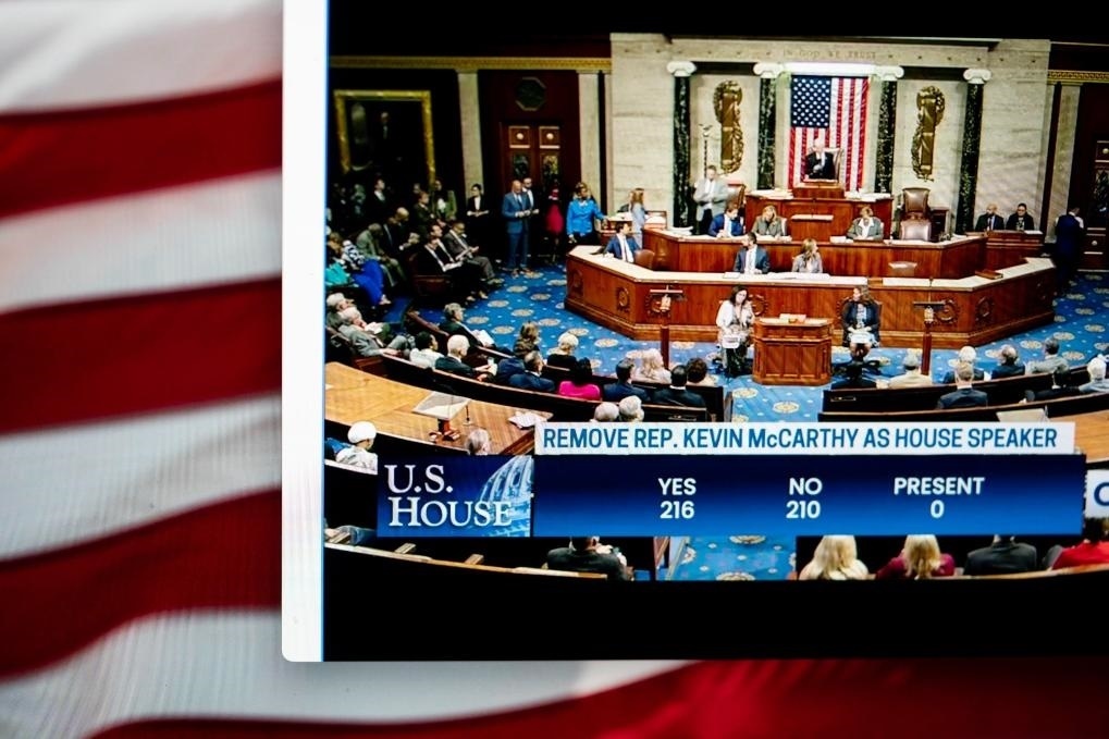 眾議院3日以216票贊成、210票反對(duì)的結(jié)果通過(guò)罷免麥卡錫的決議。這項(xiàng)決議由共和黨籍眾議員馬特·蓋茨提出,他和另外7名共和黨人以及全部參與表決的208名民主黨人一起投下贊成票。
