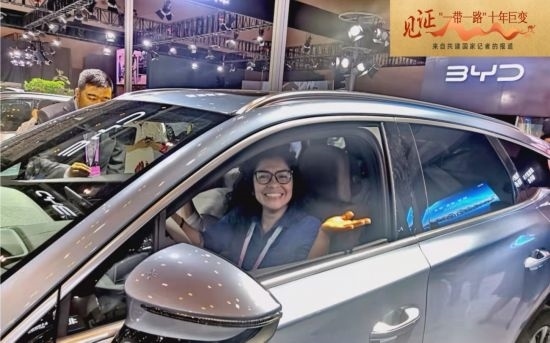 ▲ 記者在智博會體驗中國新能源汽車