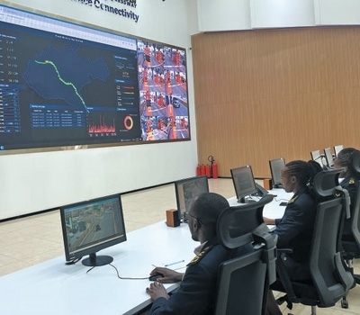 在肯尼亞內羅畢快速路監(jiān)控中心,工作人員正在監(jiān)測車輛運行狀況。鄭文嬌攝