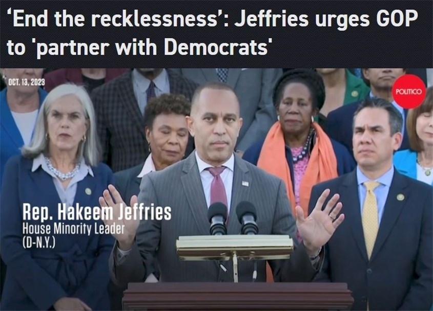 作為民主黨議長(zhǎng)候選人的眾議院少數(shù)黨領(lǐng)袖哈基姆·杰弗里斯13日警告,在眾議院共和黨人的“內(nèi)戰(zhàn)”仍在繼續(xù)的情況下,作為“極端主義者”的喬丹獲得提名只會(huì)讓國(guó)會(huì)變得“更加極端和混亂”。