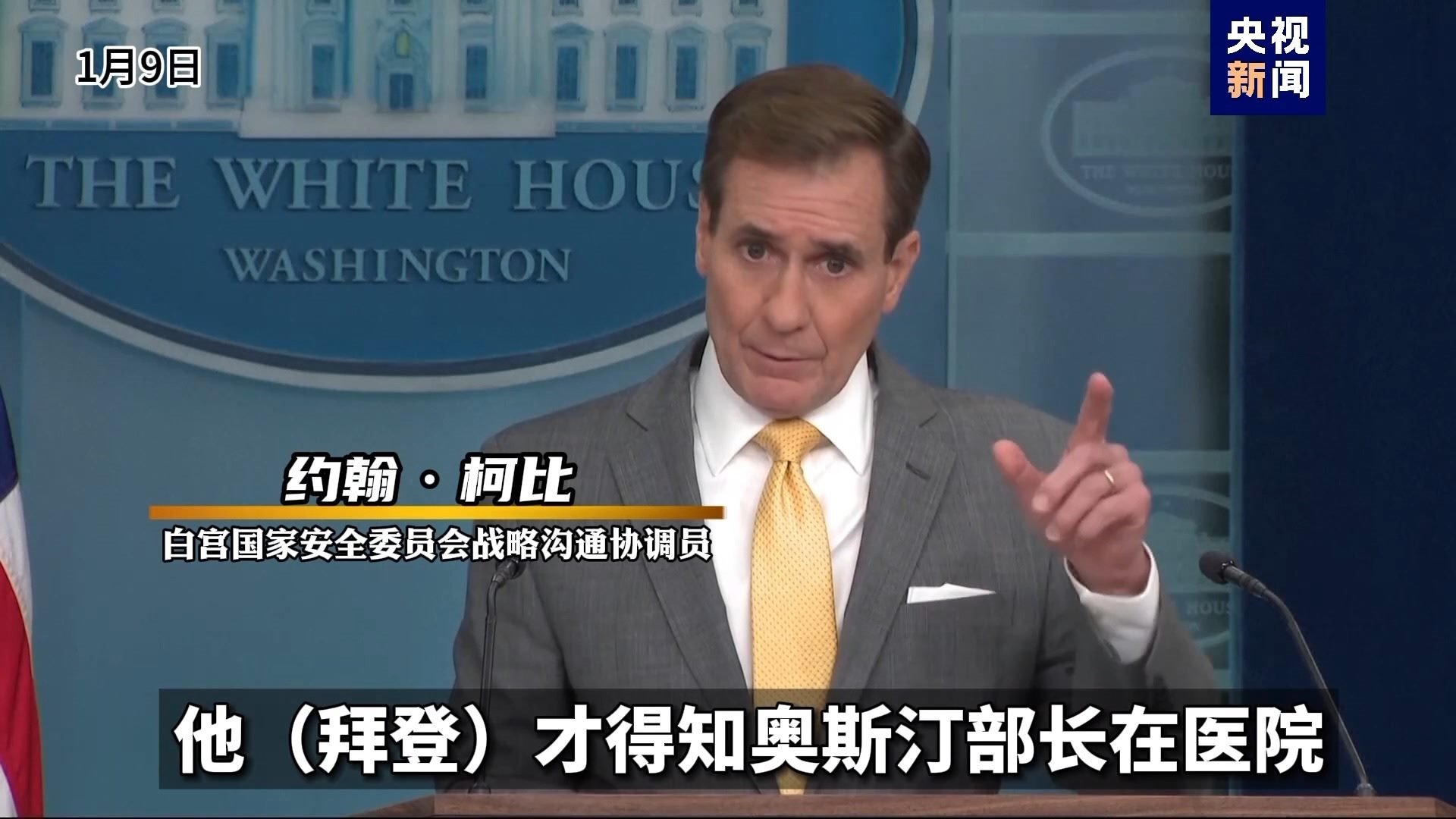 白宮國家安全委員會戰(zhàn)略溝通協(xié)調(diào)員 約翰·柯比:直到上周五(1月5日),他(拜登)才得知奧斯汀部長在醫(yī)院。直到今天(1月9日)早上,他才被告知住院的原因是前列腺癌。