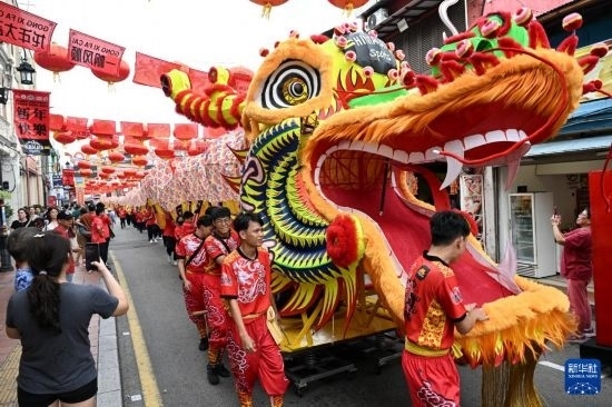 臨近春節(jié),馬來(lái)西亞馬六甲市雞場(chǎng)街上大紅燈籠高懸,一派喜慶景象。2月1日,由馬來(lái)西亞和中國(guó)的100多名青少年組成的舞龍隊(duì),共舞一條近200米的“長(zhǎng)龍”在街道上穿行而過(guò),蔚為壯觀,引人注目。