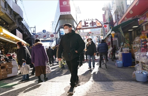 2021年12月28日,人們?cè)谌毡緰|京阿美橫町購(gòu)買(mǎi)促銷(xiāo)商品。新華社發(fā)(克里斯托弗·朱攝)