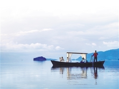 中國(guó)游客在泰國(guó)南部甲米府蘭塔島近海搭乘小船拍攝日出。