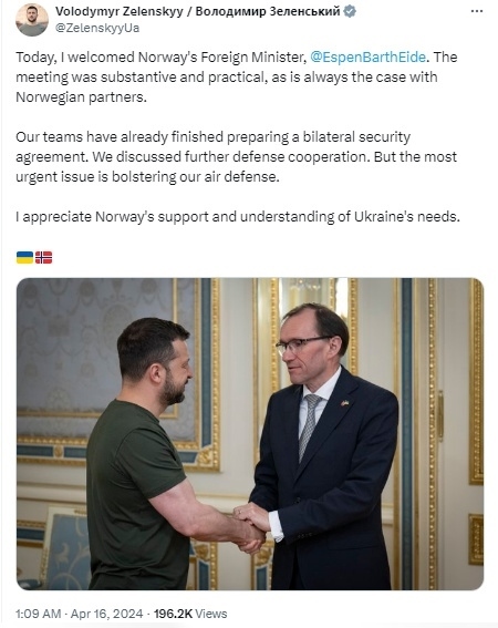 據(jù)報(bào)道,挪威外交部長(zhǎng)艾德在基輔會(huì)見(jiàn)澤連斯基后表示:“挪威將向?yàn)蹩颂m提供長(zhǎng)期的軍事、政治、財(cái)政和人道主義支持?!?/p>
