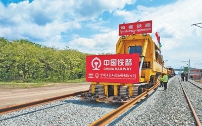 近日,在塞爾維亞和匈牙利邊境地區(qū)的塞爾維亞一側(cè),匈塞鐵路項(xiàng)目施工人員利用鋪軌車等中國(guó)設(shè)備進(jìn)行鋪軌作業(yè)。