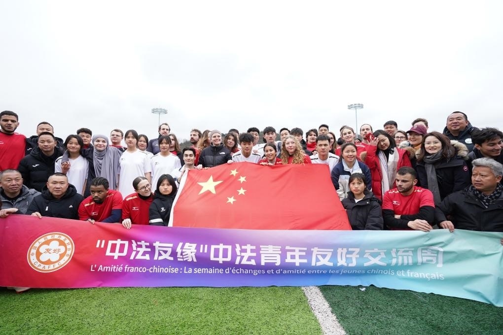 在比賽的休息時(shí)間,球隊(duì)雙方進(jìn)行了文化表演交流?!按宄甭?lián)隊(duì)帶來(lái)了苗族、侗族歌舞,贏得法國(guó)青年代表隊(duì)的熱烈歡呼。法國(guó)青年代表隊(duì)則以《玫瑰人生》《香榭麗舍大街》兩首法國(guó)歌曲予以呼應(yīng),收獲現(xiàn)場(chǎng)觀眾的陣陣掌聲。