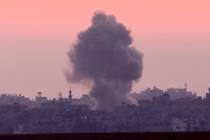 當(dāng)?shù)貢r(shí)間6月5日,加沙地帶上空在以軍空襲后升起濃煙。