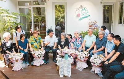 分享會尚未開始,福州市民李怡英便早早來到現(xiàn)場。見到鼓嶺之友柯志仁的外孫女畢樂華,李怡英激動地走上前,和她緊緊擁抱在一起?!拔覀兙褪恰p胞胎姐妹’!”分別65年、曾相聚4次的李怡英和畢樂華對記者說。