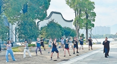中美青年共同練習(xí)太極拳。以上圖片均為本報(bào)記者劉玲玲攝