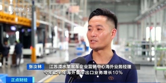 江蘇溧水某客車(chē)企業(yè)營(yíng)銷(xiāo)中心海外業(yè)務(wù)經(jīng)理 張汝林:今年上半年海外客車(chē)出口業(yè)務(wù)增長(zhǎng)10%。