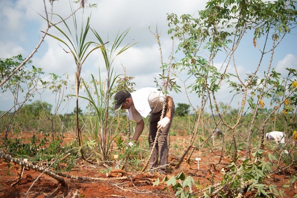 2020年3月24日,在位于海南省的中國熱帶農(nóng)業(yè)科學(xué)院的一處基地,來自埃及的副教授哈馬達(dá)·穆罕默德·哈?!ぐ⒉范爬瓍⒓又袊鵁峥圃簾釒锛夹g(shù)研究所木薯育種團隊開展的木薯選育新技術(shù)培訓(xùn)。