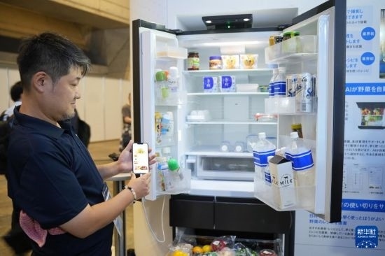 這是10月17日在日本千葉縣舉行的日本高新技術(shù)博覽會(huì)上拍攝的,日本松下公司展區(qū)搭載AI攝像頭的冰箱。新華社記者 錢錚 攝