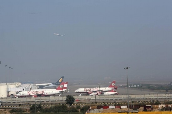 2013年2月1日,在印度首都新德里,飛機(jī)停靠在英迪拉·甘地國(guó)際機(jī)場(chǎng)。新華社記者李毅剛攝