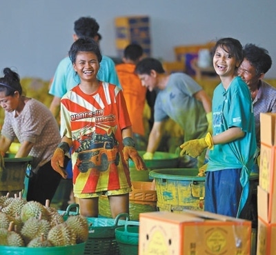 夜幕降臨,尖竹汶府漸漸熱鬧起來(lái)。水果加工廠里燈火通明,廠外道路上,運(yùn)輸車輛疾馳而過(guò)。儂瓦的貨車也已離開(kāi)工廠,滿載著美味的榴蓮駛向中國(guó)市場(chǎng)。
