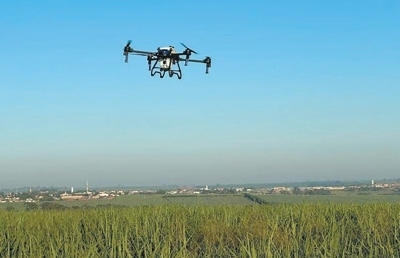 這里是圣保羅州最大的甘蔗合作社之一。今年,這家合作社的田間管理方式與往年大不相同——一架無人機緩緩飛行到甘蔗地上方,進(jìn)行農(nóng)藥噴灑作業(yè)。