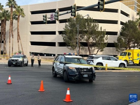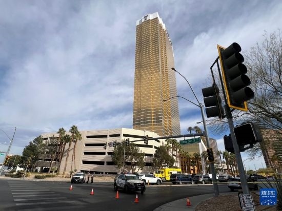 1月1日,在美國內(nèi)華達州拉斯維加斯,警方封鎖發(fā)生電動汽車爆炸事件的特朗普酒店門前區(qū)域。新華社記者 譚晶晶 攝