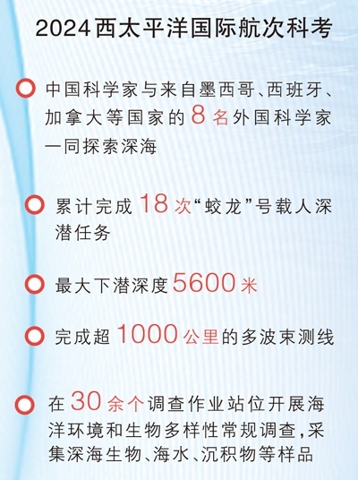 2024西太平洋國(guó)際航次科考由自然資源部中國(guó)大洋事務(wù)管理局統(tǒng)籌國(guó)家深?;毓芾碇行慕M織實(shí)施,是“數(shù)字化深海典型生境”大科學(xué)計(jì)劃下,首個(gè)在公海區(qū)域開(kāi)展的聯(lián)合科考,也是首次有外國(guó)科學(xué)家搭乘“蛟龍”號(hào)開(kāi)展深??瓶?。
