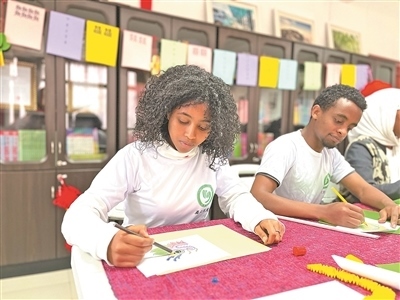 亞的斯亞貝巴大學(xué)孔子學(xué)院學(xué)生正在繪制富有中國(guó)元素的美術(shù)作品。