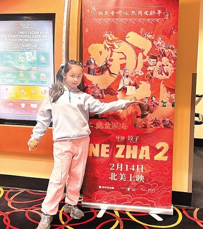 5年多前,鄭宇希在中國讀小學(xué)時看過《哪吒之魔童降世》?!跋啾鹊谝徊浚赌倪?》的畫面更加精美,特效更加酷炫。更重要的是,這次在海外看《哪吒2》,從中感受到中國電影的進步,特別自豪!”鄭宇希說。